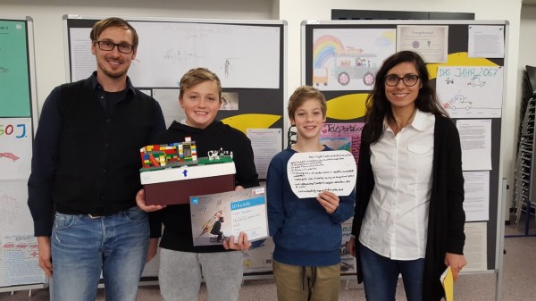 Bildquelle: (privat) - Preisträger Felix Wagner und Fynn Blum mit ihren Lehrern Nadia Rausch und Simon Bothur von der Ricarda-Huch-Schule Giessen. Unter den Preisträgern des 12. Landeswettbewerbs Faszination Technik des Vereins Deutscher Ingenieure VDI e.V, der vom Hessischen Kultusministerium unterstützt wird, befanden sich in diesem Jahr auch die beiden Schüler Felix Wagner und Fynn Blum... Continue Reading →