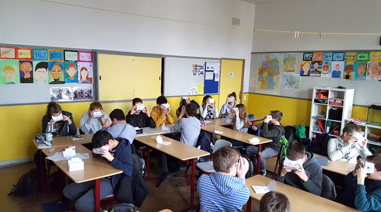 Möglich wurde dies durch eine virtuelle Klassenreise mittels VR (Virtuelle Realität) Brillen. Die sogenannten „Cardboards“ von Google lassen Personen an Orte reisen, die sie sonst gar nicht oder nur schwer erreichen könnten. Die „Expeditions“ sind sphärische Fotos von Sehenswürdigkeiten, Naturphänomenen oder Ausstellungsräumen, die mit einer VR-Brille betrachtet werden können. Jeder Teilnehmer hat die Bilder direkt vor Augen, was den Lernprozess zu einem Erfahren und Erleben werden lässt.
