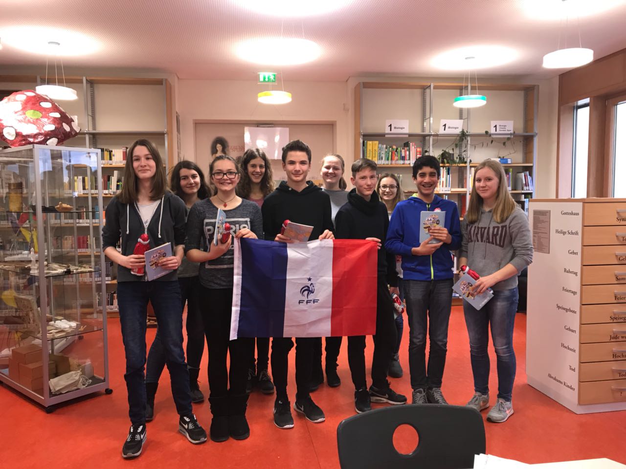 Im Dezember 2017 fand der alljährliche Schulentscheid des französischen Vorlesewettbewerbs statt. Dazu hatten alle achten Klassen, die Französisch lernen, im Vorfeld einen klasseninternen Vorlesewettbewerb durchgeführt und jeweils ihre beiden Klassensieger zum schulinternen Entscheid geschickt, der in unserer Bibliothek stattfand.