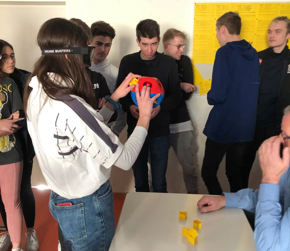 In jeweils 90minüten Workshops informierten die Polizeibeamten spannend und lehrreich mit aktuellen Statistiken und bewegenden Videos über die Gefahren des Alkohol- und Drogenkonsums beim Autofahren. Die Schülerinnen und Schüler hatten dabei stets Gelegenheit Fragen zu stellen und konnten schließlich auch praktisch mithilfe einer„Rausch-Brille“ (die einen gewissen Promillegrad simuliert) feststellen wie eingeschränkt die Reaktionsfähigkeit nach dem Konsum von Alkohol wäre.