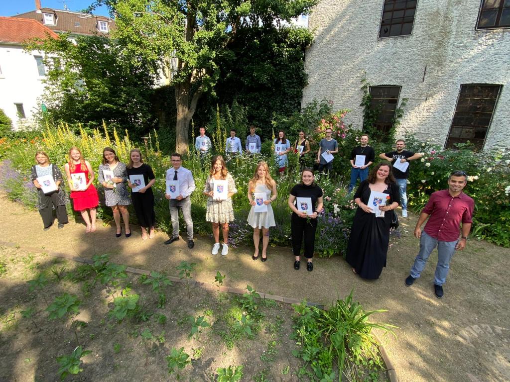 Eure Abschlussfeier war vielleicht nicht so ganz das, was ihr euch einst in bunten Bildern vorgestellt habt, doch unsere Zeremonien zur Zeugnisverleihung unter freiem Himmel, an den Füßen unserer würdigen Schulgebäude, der anregende und inspirierende Gottesdienst, das wohlige Wetter, das eine oder andere gute Gespräch nach der Zeugnisverleihung, Ausklang im Schulgarten; war doch schön!