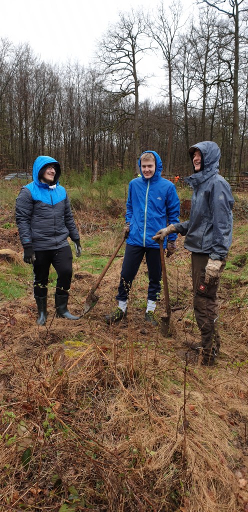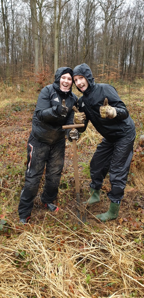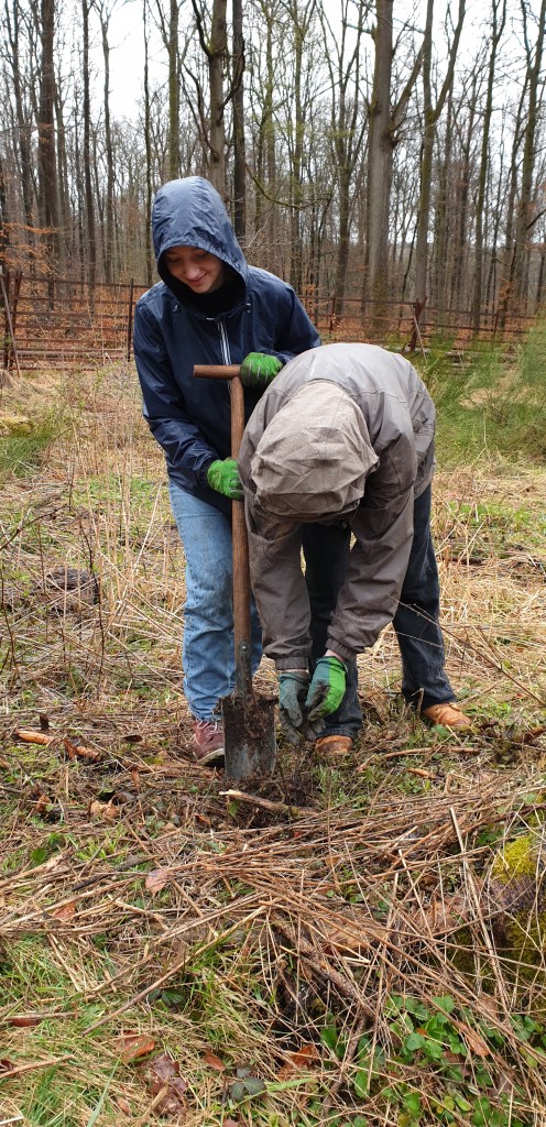 April, April, der weiß nicht, was er will. So ähnlich konnte man es bezeichnen, als die Schüler:innen der Leistungskurse Geschichte und Erdkunde der Ricarda-Huch-Schule mit dem Schulleiter Herrn Güßfeld und ihrem Tutor Christian Schmidt im Krofdorfer Forst ankamen. Regnerisch, stürmisch – nasskalt. Doch das änderte nichts an der Mission – die Zukunft pflanzen!