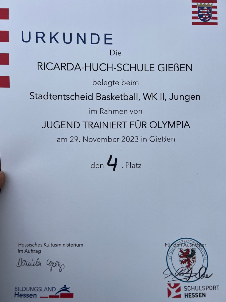 Im abschließenden Spiel gegen die Brüder-Grimm-Schule ging es um den dritten Platz und damit um den Sprung aufs „Treppchen“. Die Begegnung entwickelte sich zu einem spannenden Duell, bei dem die Führung mehrmals wechselte. Trotz einer beeindruckenden Leistung und Teamgeist musste sich das Team der Ricarda am Ende knapp geschlagen geben und erreichte schließlich einen respektablen vierten Platz.