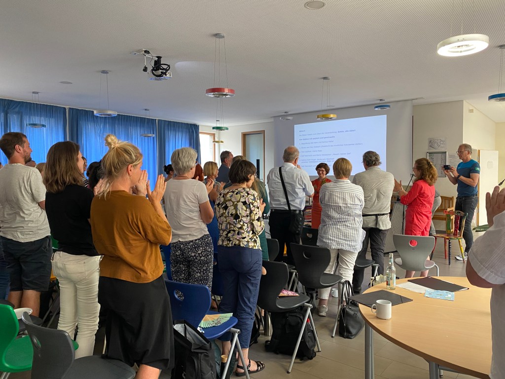 Große Ereignisse, so sagt man, werfen ihre Schatten voraus. Blickt man ihnen bangend entgegen, so fröstelt man ein wenig, wenn sie einen treffen. Dass Sabine Roth-Nagel, unsere allseits geschätzte Schulpfarrerin, Seelsorgerin und Freundin in den wohlverdienten Ruhestand übergehen und uns damit verlassen würde, das wussten wir ja, doch so recht wahrhaben wollten wir es dennoch nicht. Nun, bis dann der Tag kam: am 21.7., nach 27 Jahren, in denen uns Sabine so viel Zuspruch und Trost spendete, stets offene Ohren und ein offenes Herz hatte, uns Momente der Andacht und Freude schenkte, eine kluge Ratgeberin war, die die Dinge sah, wie sie waren und klar aussprach, wie sie sein sollten, sollte nun tatsächlich Schluss sein. An der Ricarda! Einer Schule – für Sabine nicht irgendeine Schule – an deren menschlichen Antlitz sie einen so unschätzbar großen Anteil hatte. „Ein Stück vom Himmel, ein Platz von Gott, ein Stuhl im Orbit“! Bei Sabine waren wir alle willkommen, in A208 und drumherum. Stets war es gut zu wissen, dass sie da ist und wenn man jetzt an der Tür vorbeigeht, an der vorerst nicht mehr „tritt ein!“ steht, so macht sich da schon auch so etwas wie Leere im Gemüte breit: „Hier ist dein Haus, hier ist, was zählt!“. Und jetzt? Weiter heißt es in diesem Song von Herbert Grönemeyer, der zu einer Art Leitmotiv für Sabines Ort der Einkehr geworden war, dass du und wir alle überdacht seien „von einer grandiosen Welt!“. Und aus dieser Welt sei sie ja nun auch wieder nicht, so beruhigt uns Sabine in ihrer ganz eigenen unaufgeregten Art. Zeit für gute Gespräche mit uns, die wolle sie sich freilich auch im Ruhestand nehmen. Sie freue sich sogar darauf. Nur fänden diese nun woanders statt.