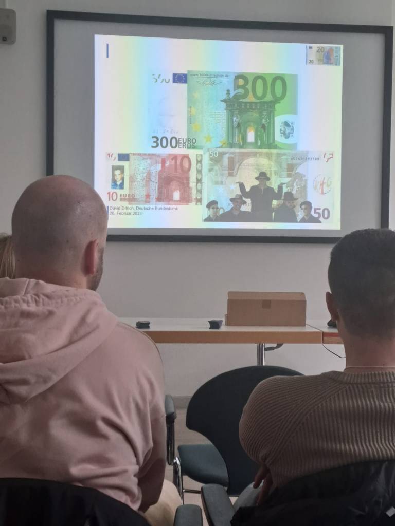 Am 26. Februar 2024 haben die Grund- und Leistungskurse PoWi der Jahrgangsstufe 12 die Deutsche Bundesbank in Frankfurt am Main besucht. Neben differenzierten Einblicken in die Fiskal- und Geldpolitik erhielten die Schülerinnen und Schüler eine Falschgeldschulung und kennen jetzt die 73 Merkmale, anhand welcher man einen echten von einem falscher Fünfziger unterscheiden kann.