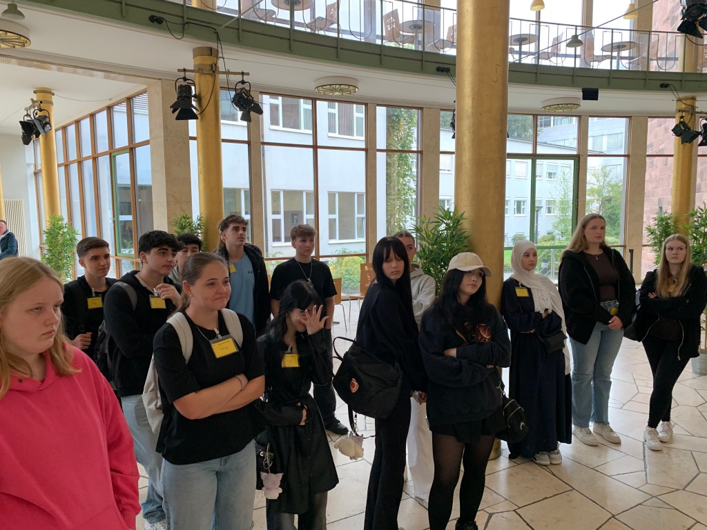 Am 09.09.2024 besuchte die 10cR zusammen mit der Powi-Praktikantin, Frau Arslan Parcasi und den Lehrkräften Frau Kraft und Frau Witteck den Hessischen Rundfunk in Frankfurt. Die Schülerinnen und Schüler haben verschiedene Einblicke in die facettenreichen Bereiche des hr erhalten. Schwerpunkte waren die Besuche der Radio- und Fernsehstudios. Aber auch historische Gebäude und deren Eckdaten wurden beleuchtet. Hierbei konnten die Schülerinnen und Schüler ihre individuellen Fragen zur Organisation, Ablauf und Ausbildungsberufen stellen. Ein besonderes Highlight war die Youtuber-Ecke der Sendung „Deutsch Rap Ideal“. Celo und Abdi werden ab heute einige Follower mehr haben 🙂