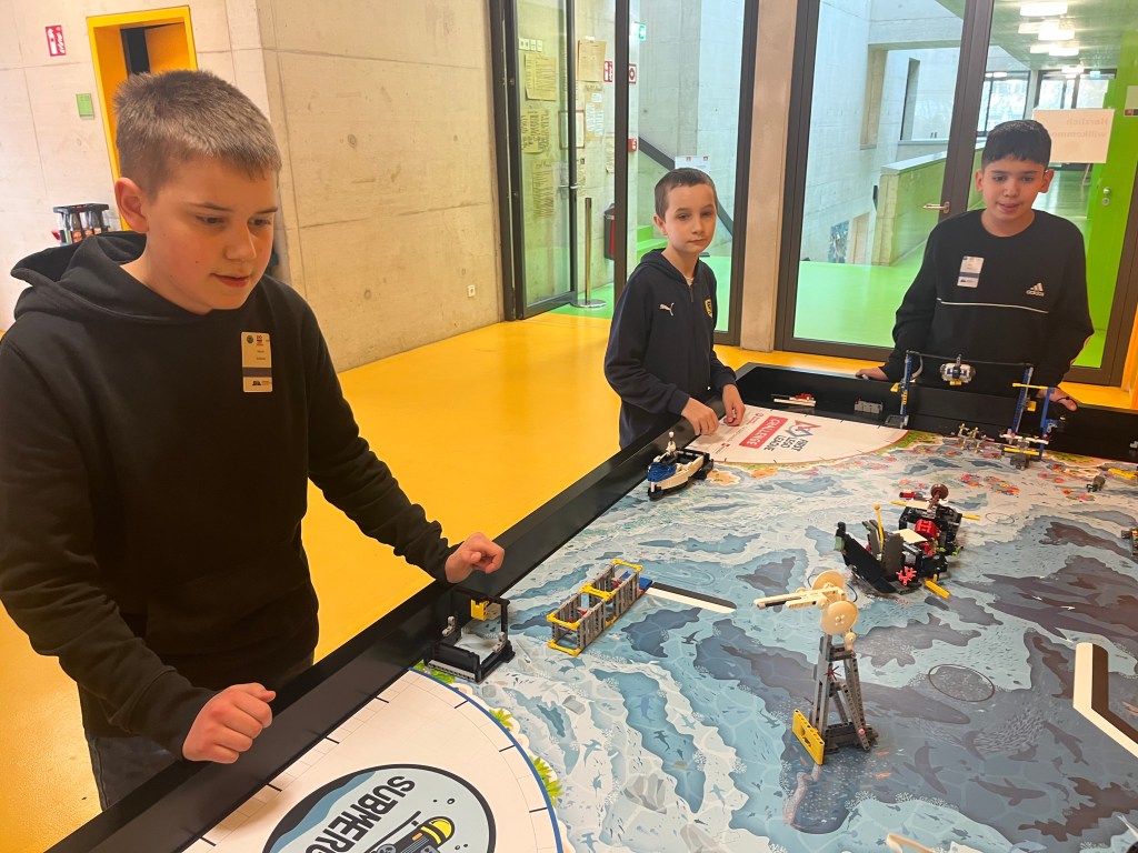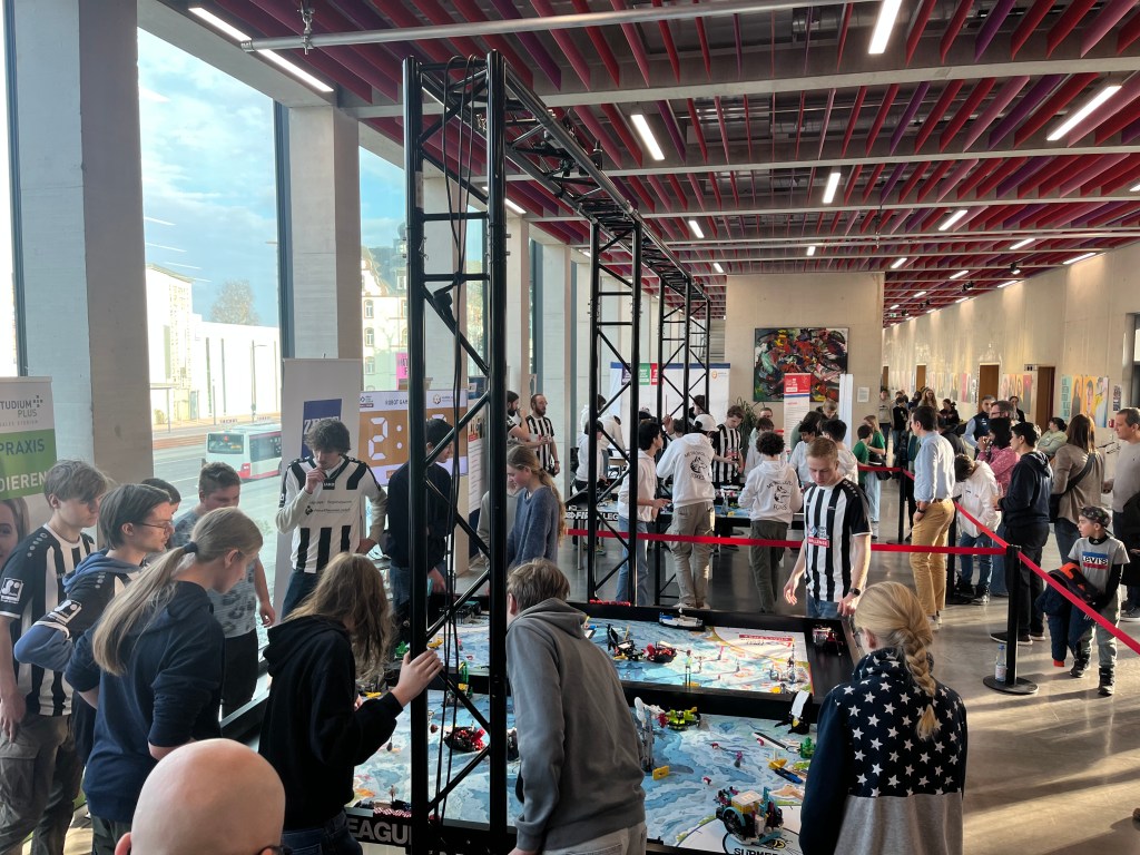 Im Robotgame bewiesen Mattis und Henri ihr technisches Geschick. Mit ihrem selbst programmierten Roboter erzielten sie beachtliche 185 Punkte. Trotz einer nicht funktionierenden Aufgabe verpassten sie nur knapp den Einzug ins Halbfinale, für das 200 Punkte erforderlich gewesen wären.