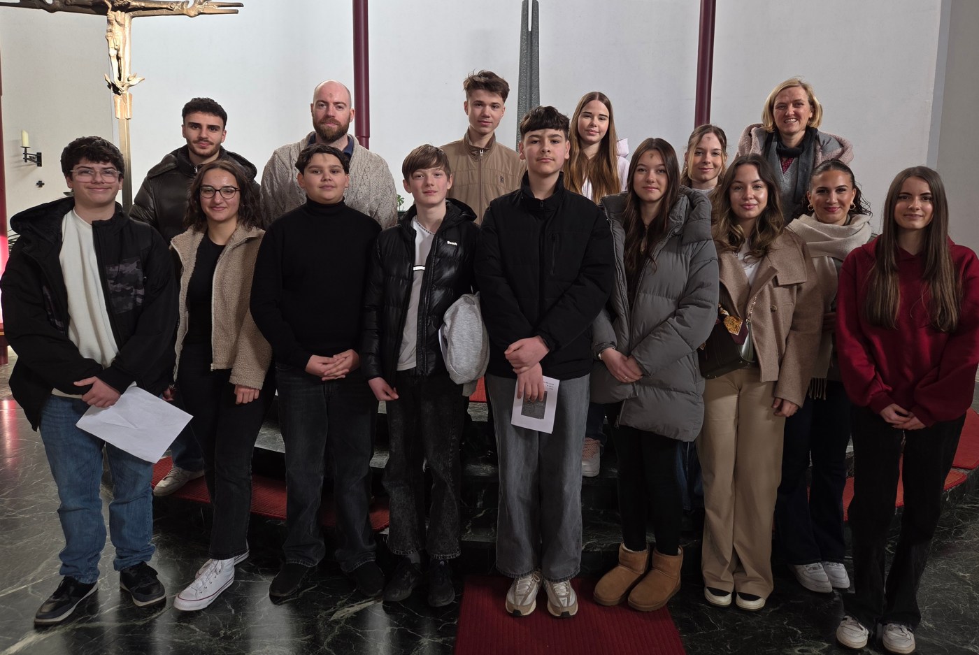 Der Einladung zum Aschermittwochsgottesdienst der Gießener Schulen sind viele Schüler aus den verschiedenen katholischen Religionskursen der Ricarda-Huch-Schule gefolgt und auch Schüler anderer Konfessionen haben sich angeschlossen. Begleitet wurden die Kurse von den beiden katholischen Religionslehrern Frau Jentsch-Dauzenroth und Herrn Wiche. Das Besondere an diesem Gottesdienst ist, dass er von Schülern für Schüler gestaltet wurde. Nach dem närrischen Treiben der letzten Tage lädt der Aschermittwochsgottesdienst zum Thema „Liebe sei Tat“ dazu ein, gemeinsam innezuhalten und zu reflektieren, wie wir die Nächstenliebe aktiv schon mit kleinen Taten leben und zum Gelingen des Miteinanders und der Fürsorge untereinander beitragen können.