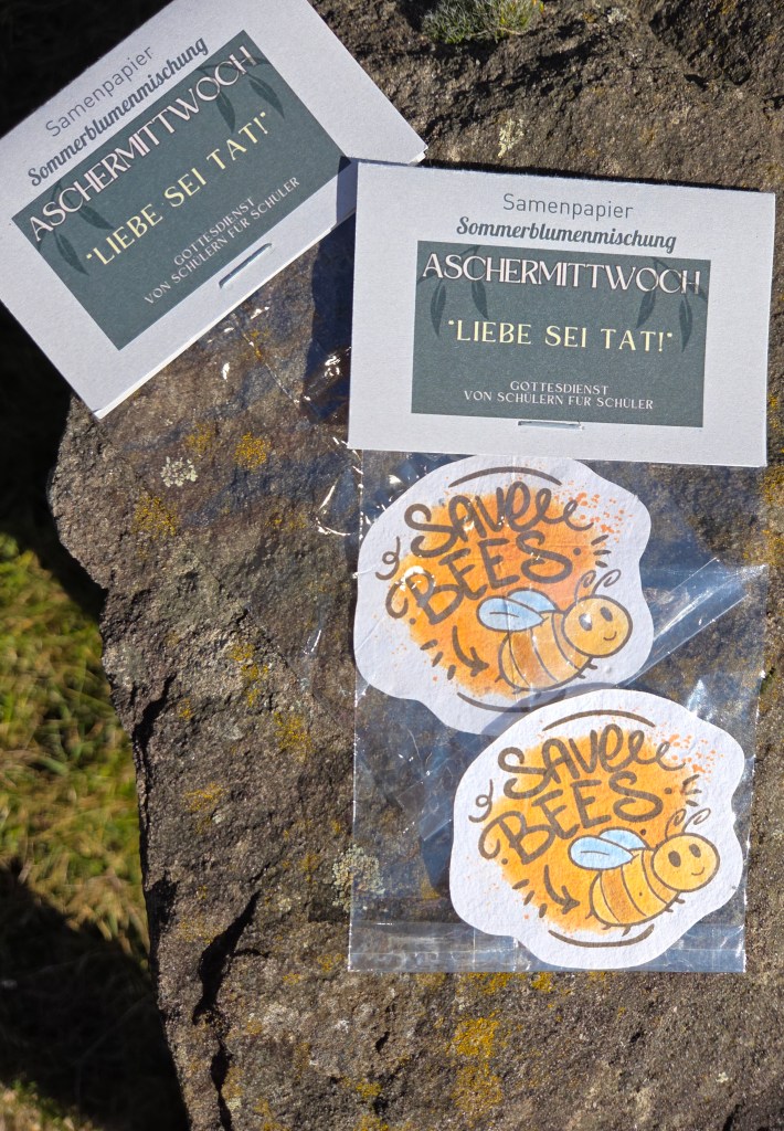 Damit nach den Worten der Liebe im Gottesdienst auch die Taten folgen können, hat zum Abschluss jeder Schüler eine bienenfreundliche Sommerblumenmischung zum Aussäen erhalten. Somit ist am Aschermittwoch zwar das närrische Treiben vorbei, aber die Aufforderung „Liebe sei Tat!“ kann zugleich der Anfang sein für ein neues Bewusstsein Gutes zu tun.