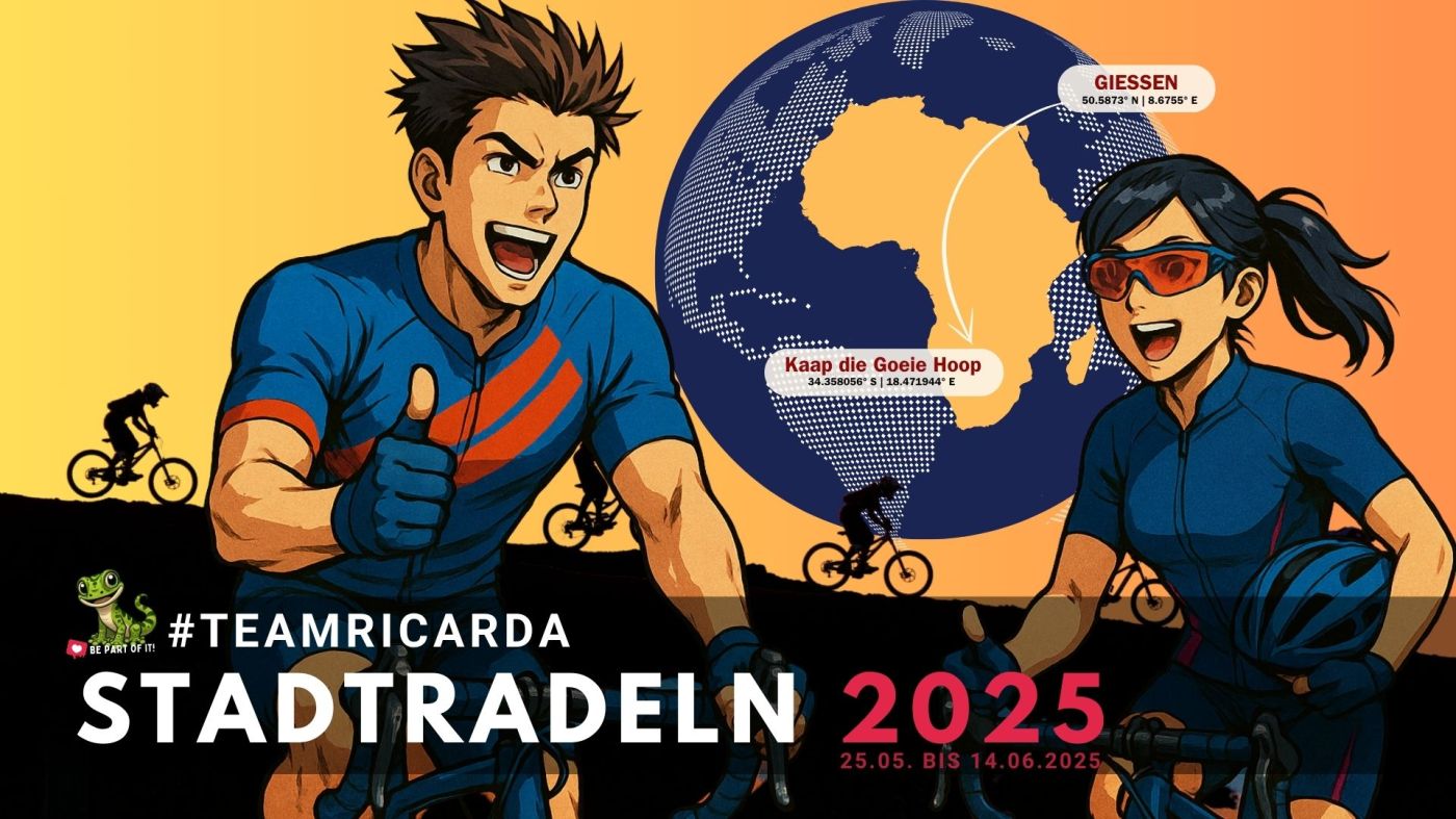 Mit diesem Jahr wäre die RICARDA das sechste Jahr in Folge dabei. Im ersten Jahr waren wir etwa 30 Radlerinnen und Radler und hatten immerhin gute 5000 Kilometer zusammengestrampelt, was schon einmal einen respektablen Pro-Kopf-Durchschnitt ergab. Davon angestachelt hatten wir uns die folgenden Jahre dann ambitionierte 40.000 Kilometer vorgenommen. Kontinuierlich wurden es mehr Teilnehmerinnen und Teilneher, die an den Start gingen, doch einmal rum um den Globus schafften wir leider nie. Nun, „auch nur gewollt zu haben, genügt in großen Dingen“ so sprach es bereits der umbrische Elegiker Properz vor Christi Geburt und doch wollen wir in diesem wie auch schon im letzten Jahr unsere Erwartungen etwas anpassen, in der Hoffnung, das Gewollte dann doch zu schaffen! In guter Hoffnung sozusagen 😉