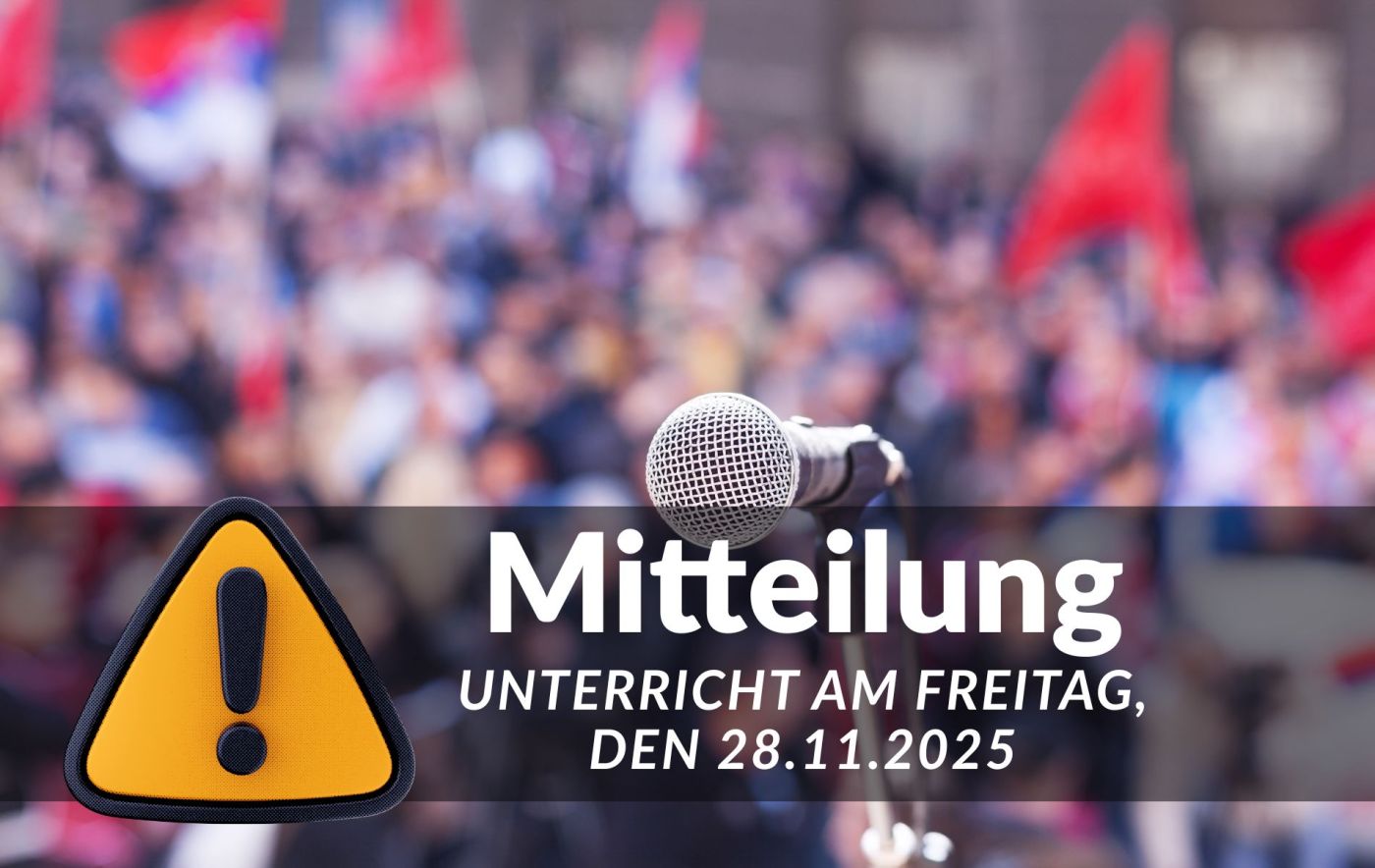Der Unterricht endet am Freitag, den 28.11.2025, für alle Schulen in Trägerschaft der Stadt Gießen spätestens um 13:00 Uhr. Dies gilt ebenso für alle Betreuungsangebote am Nachmittag, die an diesem Tag entfallen.