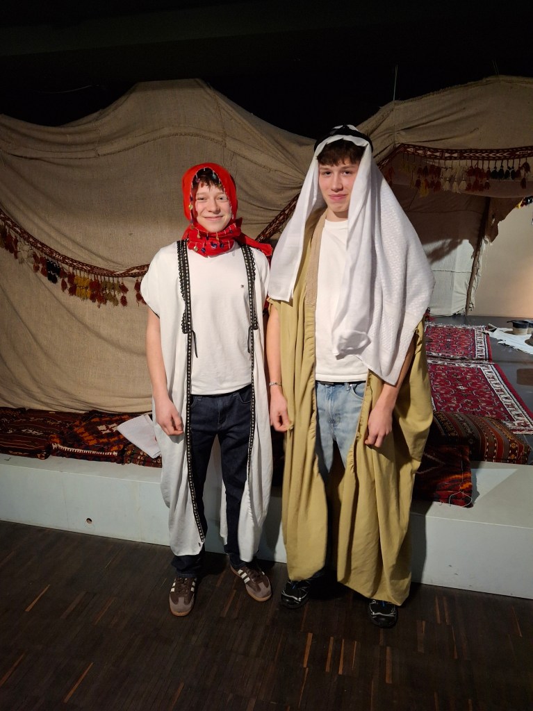 In einem abwechslungsreichen Workshop zum interreligiösen Lernen tauchten die Jugendlichen im Nomadenzelt in biblische und koranische Erzählungen rund um Abraham beziehungsweise Ibrahim ein. Einige schlüpften in Nomadengewänder, mahlten Mehl am Mühlstein und hörten den alten Geschichten in gemütlicher Atmosphäre zu.