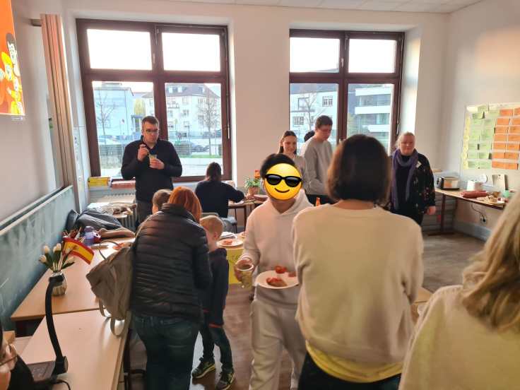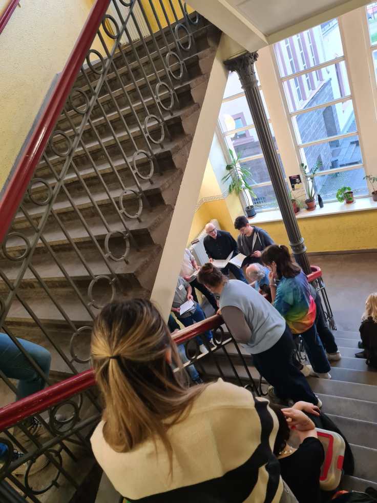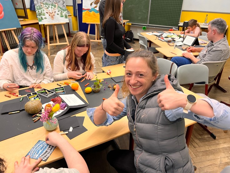 Dazwischen gab es viele angenehme Gespräche und schöne, teils unerwartete Begegnungen – mit ehemaligen Lehrerinnen und Lehrern, mit früheren Schülerinnen und Schülern, mit Menschen, die der Schule auf unterschiedliche Weise verbunden sind. Hier spielte eine Instrumentalgruppe, dort sang der Lehrerchor, in der Aula sorgten Theater- und Musicalbeiträge für Farbe, Tempo und gute Laune. Das Essen war hervorragend, die Tapasbar ein voller Erfolg – so erfolgreich und nachhaltig, dass man den Knoblauch gefühlt und beseelt noch zwei Tage später ausgeatmet hat 😉