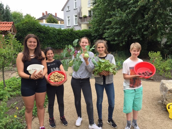 ... wollen wir die Gelegenheit nicht verstreichen lassen, auf das Wirken unserer Schulgarten-AG hinzuweisen, die unter der Leitung unseres (ehemaligen) Referendares Sönke Ahrens, den wir nun schweren Herzens nach NRW haben ziehen lassen, viele Leckereien im neu angelegten Schulgarten angebaut haben. Lassen wir die Bilder sprechen.
